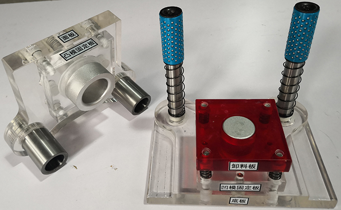 在模具同一位置上能完成幾個(gè)不同的工序的模具.落料凹模在下模處,凸凹模在上模,卸料、凹模、凸凹模均需設(shè)有浮動頂出結(jié)構(gòu),并能一次完成落料、沖孔工藝,下模設(shè)有擋料銷,各零件需精密定位,并有定位銷確保拆裝方便。 |