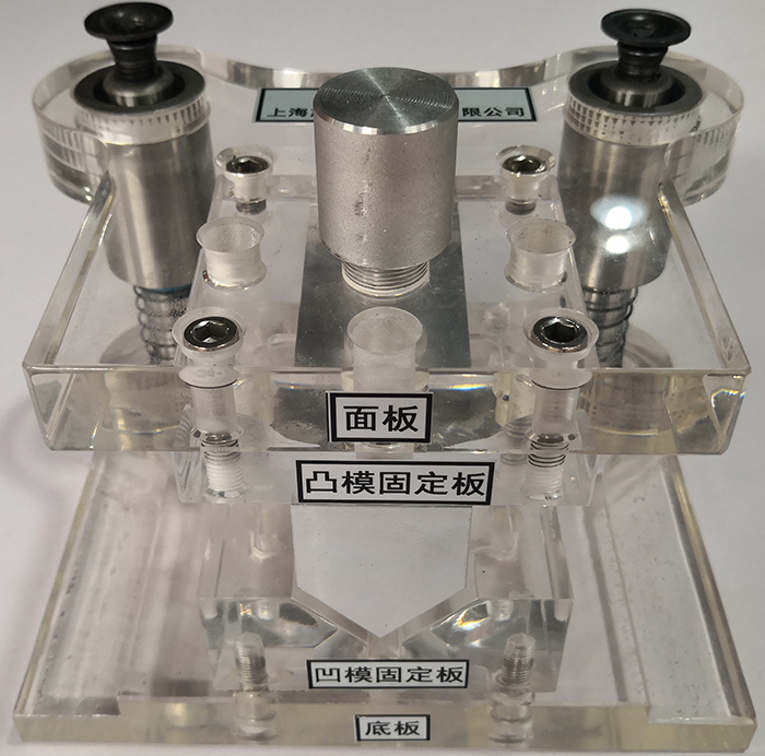 把板材料毛坯成形成各種開口空心工件的模具,此模具帶壓邊裝置,拉深前毛坯套在壓邊圈上依靠外形定位,拉深后冷沖件從凸模上托出,凸凹模都裝有頂出裝置。 拉伸小鋁蓋,拉伸深度不小于8 mm,產(chǎn)品尺寸不小于35 mm,模具帶有壓邊結(jié)構(gòu),并且調(diào)整非常方便。 |