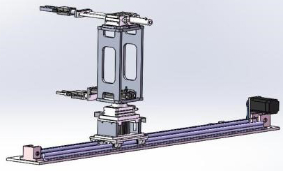 本站的功能是完成向各個工作單元輸送工件,系統(tǒng)分為雙機(jī)械手單元和直線位移位置精確控制單元兩部分,系統(tǒng)上電后,先執(zhí)行回原點操作,當(dāng)?shù)竭_(dá)原點位置后,若系統(tǒng)啟動,供料站物料臺檢測傳感器檢測到有工件時,機(jī)械手整體先提升到位后手爪伸出到位后手爪夾緊,手爪夾緊到位手爪開始縮會機(jī)械手整體下將到位后,伺服電機(jī)開始工作按設(shè)定好的脈沖量到加工站。加工站到位后機(jī)械手整體提升,提升到位后手爪伸出伸出到位后機(jī)械手整體下降,下降到位后工件已放入加工站物料臺上,然后手爪松開,松開到位后機(jī)械手回縮,等加工站加工完成后再將工件送到裝配站進(jìn)行大小料裝配,裝配完成后機(jī)械手抓取物料送到分揀站進(jìn)行分揀,這樣雙機(jī)械手的一個加工運動過程就完成了。只要料筒不缺料會持續(xù)以上過程。當(dāng)料筒出現(xiàn)缺料后,機(jī)器人會搬運過來物料,機(jī)械手會運行到取料位置抓取機(jī)器人上的小料,然后放入小料筒中,然后返回原點,當(dāng)機(jī)器人再次搬運過來物料,機(jī)械手會運行到取料位置抓取機(jī)器人上的大料,然后放入大料筒中,這樣一個物料的拆分過程就完成了,直到把碼垛料臺上的物料全部拆分完成后為止。
