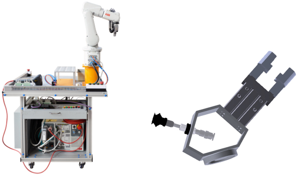 工業(yè)機(jī)器人循環(huán)生產(chǎn)線實訓(xùn)裝備采用1+1組合式結(jié)構(gòu)分別由安裝在鋁合金導(dǎo)軌式的實訓(xùn)臺上的送料單元、加工單元、裝配單元、雙層輸送單元、分揀單元5個單元,加上由鋁合金導(dǎo)軌式的實訓(xùn)臺上工業(yè)機(jī)器人碼垛單元兩大部分組合成多種組合方式的實訓(xùn)裝備。電氣布局采用抽屜式,所有其電氣控制器都安裝在網(wǎng)孔板式的抽屜上,這種機(jī)電分離的格式更加符合了工業(yè)實際情況。外觀如上圖所示。