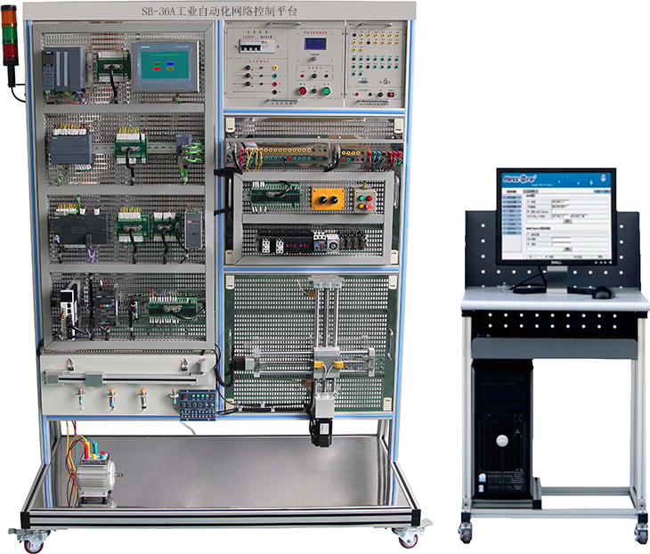 工業(yè)自動化網(wǎng)絡(luò)控制實訓(xùn)平臺,工業(yè)控制網(wǎng)絡(luò)是近年來發(fā)展形成的自動控制領(lǐng)域的網(wǎng)絡(luò)技術(shù),是計算機(jī)技術(shù)、通信技術(shù)與自動控制技術(shù)相結(jié)合的產(chǎn)物,其主要包括現(xiàn)場總線技術(shù)和工業(yè)以太網(wǎng)技術(shù)。為了使院校自動化專業(yè)的學(xué)生能夠加深對工業(yè)控制網(wǎng)絡(luò)的理解,直接接觸和操作先進(jìn)的工業(yè)控制設(shè)備,熟悉工業(yè)現(xiàn)場總線的原理和運行機(jī)制,使之走上工作崗位后能立即參與解決工程實際問題,我們研制了一套工業(yè)控制網(wǎng)絡(luò)綜合實驗系統(tǒng)。該實驗系統(tǒng)模擬工業(yè)現(xiàn)場實際情況,通過PROFIBUS總線和工業(yè)以太網(wǎng),建立主從站通信系統(tǒng),實現(xiàn)各類傳感器的實時數(shù)據(jù)采集和遠(yuǎn)程監(jiān)控。同時,該實驗平臺還可以為現(xiàn)場總線技術(shù)、工業(yè)自動化與控制網(wǎng)絡(luò)、集散控制系統(tǒng)、工業(yè)自動化系統(tǒng)課程設(shè)計、過程控制等專業(yè)課程服務(wù)。