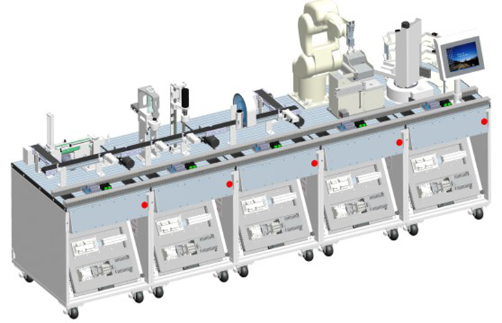 灌裝自動化生產(chǎn)線實訓裝置,機電一體化技師實訓考核裝置,灌裝自動化生產(chǎn)線緊密結合《中國制造2025》和《國家中長期人才發(fā)展規(guī)劃綱要》對“智能制造”和經(jīng)濟社會發(fā)展重點領域急需緊缺專門人才及創(chuàng)新型科技人才的培養(yǎng)要求,依據(jù)國家相關職業(yè)工種培養(yǎng)及鑒定標準,結合中國當前制造業(yè)的崗位需求,接軌世界技能競賽(Worldskills)相關標準及規(guī)程開發(fā)設計而成。該套系統(tǒng)以“工作站”(Working Station)形式綜合體現(xiàn)機電一體化自動生產(chǎn)、工業(yè)機器人自動化“工作單元”、及其他附屬工作設施,操作者可以在學習中培養(yǎng)訓練自動化專業(yè)技能、機器人自動化技能、世界級競賽要求等,同時也可以提高職業(yè)素養(yǎng)中的社會能力與方法能力。