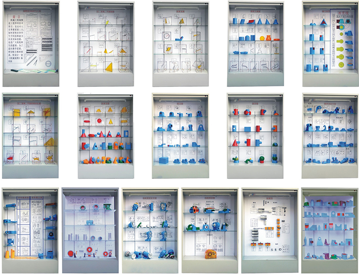 機(jī)械制圖陳列柜,適用于中專、職工中學(xué)、電視中學(xué)、職業(yè)高中機(jī)械類專業(yè)的制圖教學(xué),亦可供其它相近專業(yè)使用或參考。為突出培養(yǎng)學(xué)生畫圖能力和看圖能力這條主線,對機(jī)械專業(yè)學(xué)生理論學(xué)習(xí),使用范圍增強認(rèn)識,加深理解,本陳列柜是一套提高教學(xué)質(zhì)量的理想教學(xué)設(shè)備。