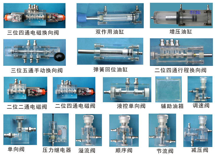 1.在原有透明液壓PLC控制實驗裝置幾十種基本回路上增加了可模擬真實挖掘機工作裝置各種動作。