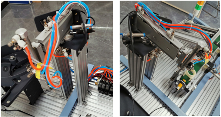 手爪傳感器:抓取物料由雙向電控氣閥控制,當雙向電控氣閥得電,手爪夾緊,手爪傳感器有信號輸出,指示燈亮。雙向電控氣閥另一端通電,手爪松開。