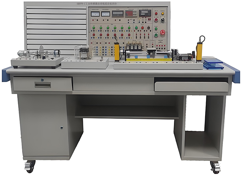 傳感器檢測實訓(xùn)設(shè)備,傳感器實訓(xùn)臺,工業(yè)傳感器實訓(xùn)臺,傳感器實訓(xùn)室設(shè)備是適應(yīng)不同類別與不同層次的專業(yè),推出模塊化的實訓(xùn),主要用于各大、中專院校開設(shè)的自動檢測技術(shù)、傳感器原理與技術(shù)、非電量電測技術(shù)、工業(yè)自動化儀表與控制、機械量電則等課程的實驗。通過課程教學(xué)大綱規(guī)定的相關(guān)實驗,可以幫助學(xué)生加強對書本知識的理解,并在做實驗的過程中,通過對型號的采集、轉(zhuǎn)換、分析,使學(xué)生掌握基本的操作技能,提高學(xué)生的動手能力,培養(yǎng)學(xué)生掌握使用傳感器的檢測基本技能及傳感器的測試技術(shù)、設(shè)計性實驗,使學(xué)生能利用傳感器構(gòu)成自動控制系統(tǒng),培養(yǎng)學(xué)生初步工程實踐能力。為各高等院校、中專與職業(yè)技術(shù)學(xué)院等新建或擴建實驗室提供了理想的實設(shè)備。
